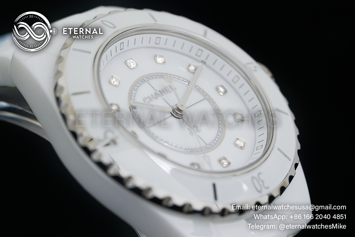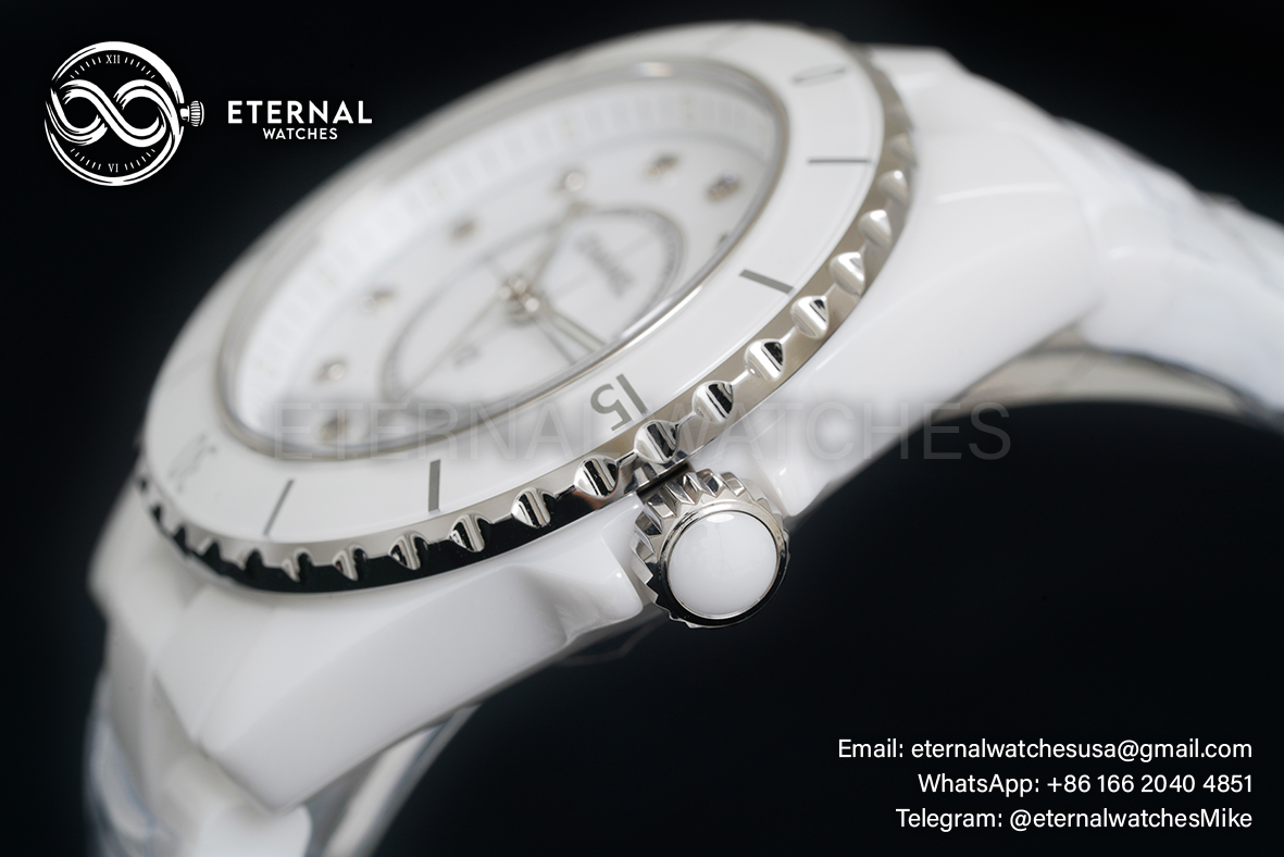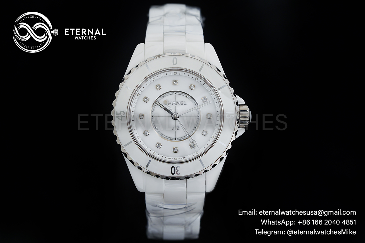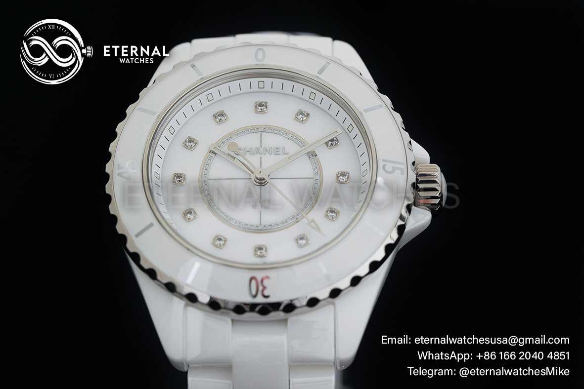 MOVEMENT: Swiss ETA Quartz (ETA.956.612 - Same as Genuine) CASE DIAMETER: 33mm THICKNESS: 11mm DIALCOLOR: White Dial with Diamond Markers CASE MATERIAL: High Grade White Ceramic Case BRACELET: High Grade White Ceramic with Deployant Buckle FRONT GLASS: Scratch-proof Sapphire Crystal, CASE BACK: Solid case back with detailed engraving BEZEL: Ceramic Bezel CLASP TYPE: Deployant Buckle