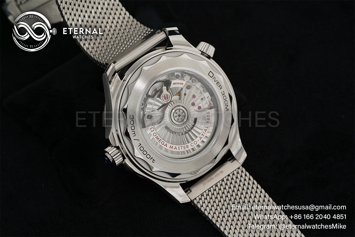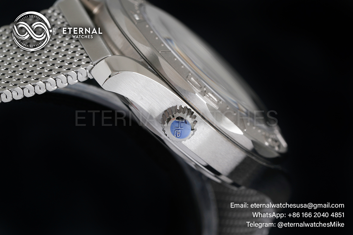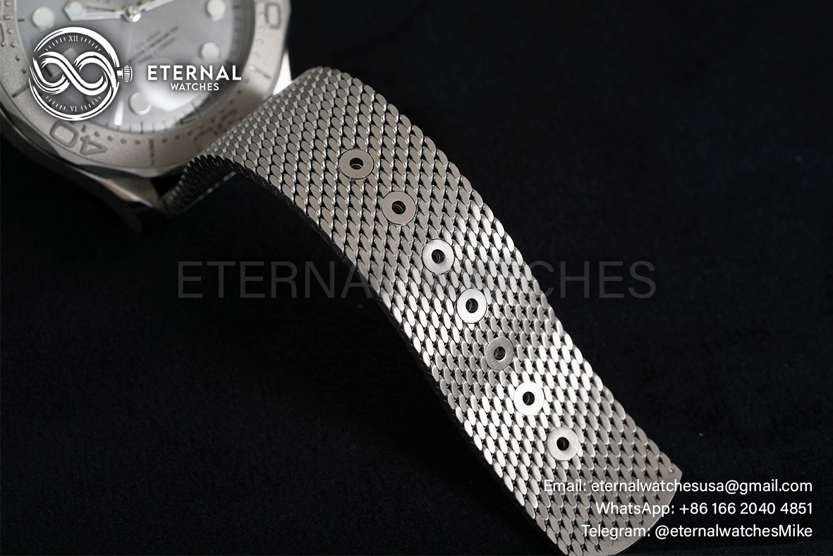 MOVEMENT:Asian Clone 8806 Automatic Movement with Decorated Rotor & Bridges/Plates CASE DIAMETER:42mm THICKNESS:13.5mm DIAL COLOR:Silver Textured Dial with Large Dot Markers CASE MATERIAL:Solid 316L Stainless Steel Case BRACELET:Solid Stainless Steel Mesh Bracelet with Deployant Clasp FRONT GLASS:Sapphire Crystal with AR Coating CASE BACK:Display Case Back with Detailed Engraving BEZEL:Titanium Bezel CLASP TYPE:Deployant Clasp