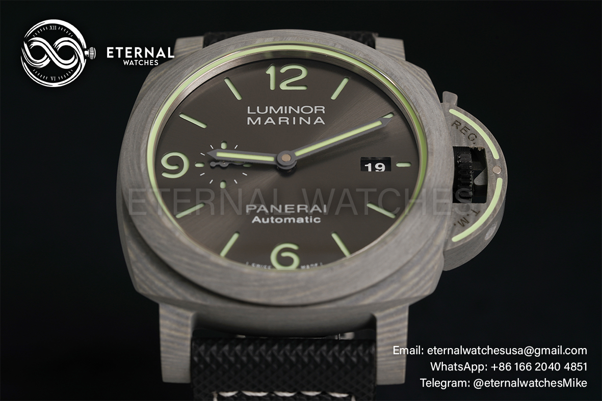 MOVEMENT: Super Clone P9010 Automatic movement, 28800bph, Cut out design Rotor as per genuine, Modified to P9010 Calibre Look CASE DIAMETER:44mm THICKNESS:15mm DIAL COLOR:Grey Dial & Numeral/Stick Markers CASE MATERIAL:Forged Carbon Case BRACELET:Black Nylon SportTech Style Velcro Strap with Buckle FRONT GLASS:Scratch-proof Sapphire Crystal CASE BACK:Solid case back BEZEL:Carbon Bezel CLASP TYPE:Tang Buckle DATE INDICATOR:At 3:00 position (Adjusted via the crown)
