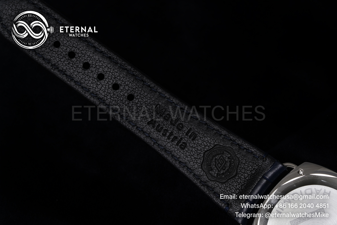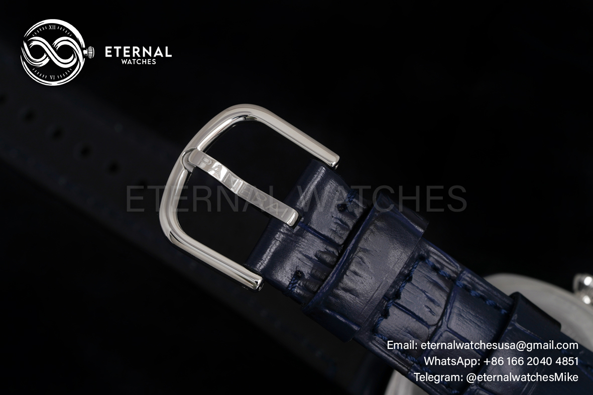 MOVEMENT: Super Clone P900 Automatic movement, 28800bph, Cut out design Rotor as per genuine, Modified to P900 Calibre Look CASE DIAMETER: 40mm THICKNESS: 14mm DIAL COLOR: Blue Dial CASE MATERIAL: Solid 316L Stainless Steel BRACELET: Blue Leather Strap with Tang Buckle FRONT GLASS: Sapphire Crystal with Colorless AR Coating CASE BACK: Solid case back with engraving BEZEL: Polished Bezel CLASP TYPE: Tang Buckle DATE INDICATOR: At 3:00 position (Adjusted via the crown)
