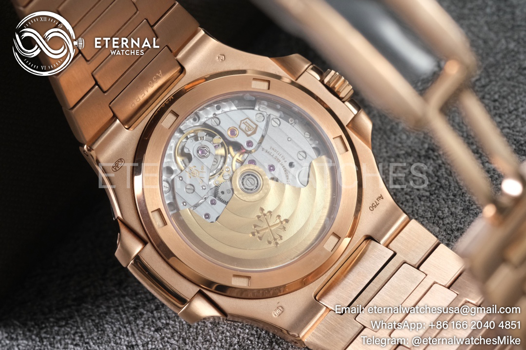 MOVEMENT: Platinum Plated Super Clone 324 Automatic (28,800bph) Movement with Decorated Bridges/Plates and Gold Plated Rotor with Insignia like Genuine Calibre PP324sc (Engraved Decorations on Movement and with same Position Balance Wheel as per Genuine) CASE DIAMETER: 40mm THICKNESS: 8.5mm DIAL COLOR: Grey Textured Dial with Stick Markers (Swiss Grade Superlume on Needles & Markers) CASE MATERIAL: 18K Rose Gold Plated Solid Stainless Steel 316F (This is 1:1 Case Construction like Genuine) BRACELET: 8K Rose Gold Plated Solid Stainless Steel 316F FRONT GLASS: Sapphire Crystal with AR Coating CASE BACK: Display Case Back BEZEL: Rose Gold Bezel CLASP TYPE: Deployant Clasp DATE INDICATOR: At 3:00 Position (Adjusted via the crown)