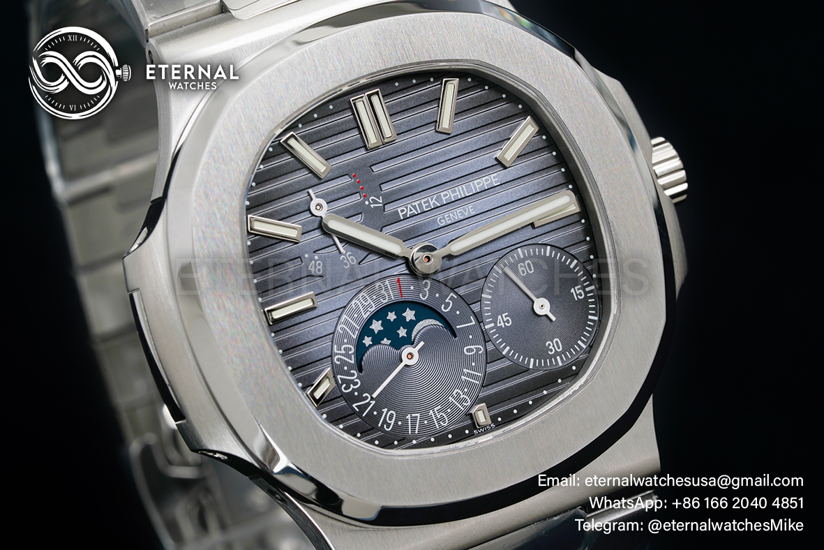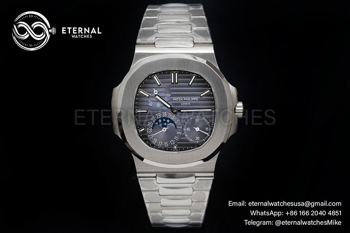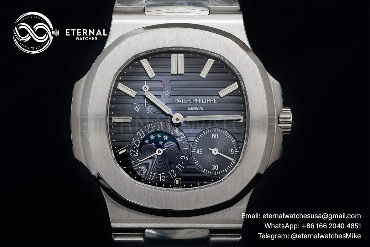V3 Updated Clasp Recessed buttons at sides to adjust the calendar functions Working Adjustable Power Reserve MOVEMENT:Asian Super Clone PP240 Automatic Movement with Decorated Rotor & Bridges/Plates Like PP Caliber (Rotor at 9:00 Position) CASE DIAMETER:40mm THICKNESS:8.8mm DIAL COLOR:Blue dial with Stick Markers (Superlume Applied) CASE MATERIAL:Solid 316L stainless steel BRACELET:Solid Stainless Steel with Deployant Clasp FRONT GLASS:Scratch-proof sapphire crystal with AR coating CASE BACK:Display case back BEZEL:Polished/Brushed bezel CLASP TYPE:Deployant Clasp