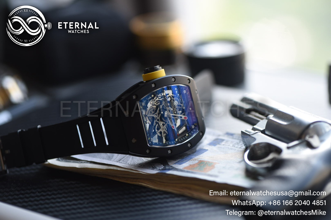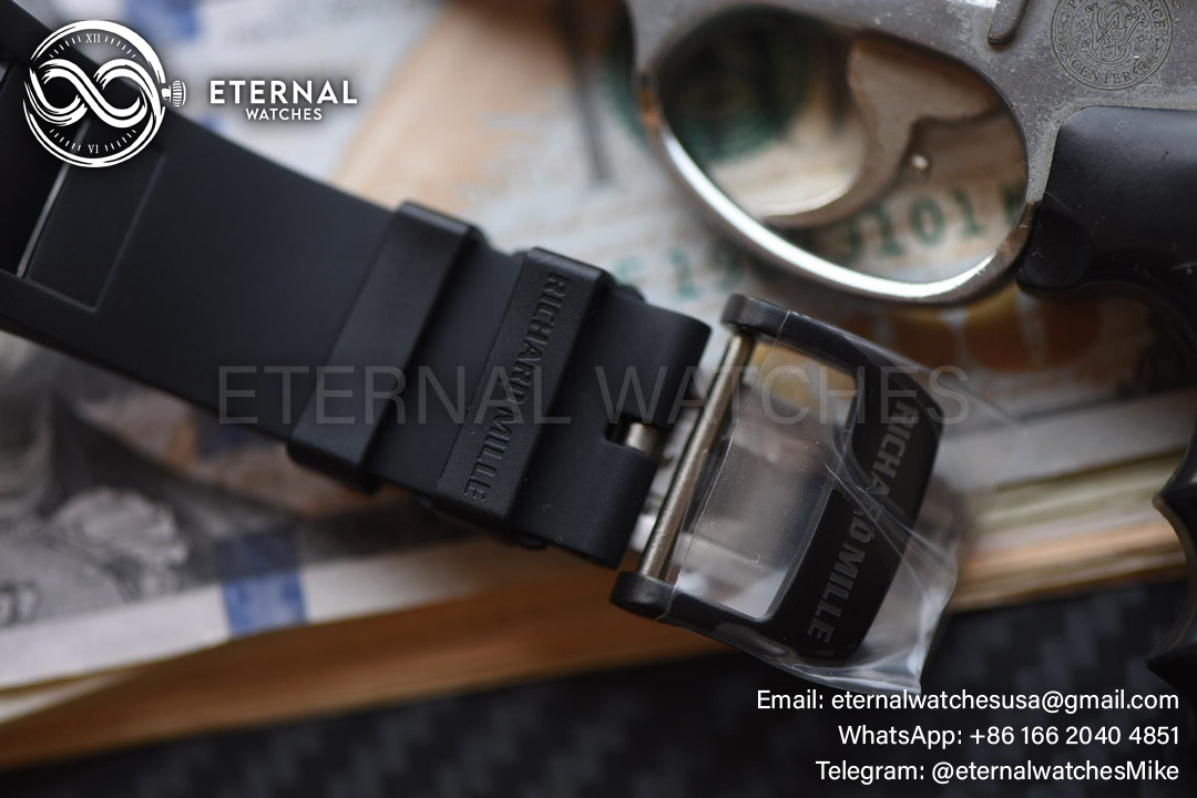 MOVEMENT:Asian clone RMUL1 manual movement, working spring wheel at same position as genuine watch CASE DIAMETER:43mm x 50mm THICKNESS:13.5mm DIAL COLOR:Skeleton Dial with Black Inner Bezel Rehaut CASE MATERIAL:Black Ceramic Case with Yellow Crown BRACELET:Black Vented Strap with Deployant Buckle FRONT GLASS:Scratch-proof sapphire crystal with AR coating CASE BACK:Display Case Back BEZEL:Ceramic Bezel CLASP TYPE:Deployant Clasp