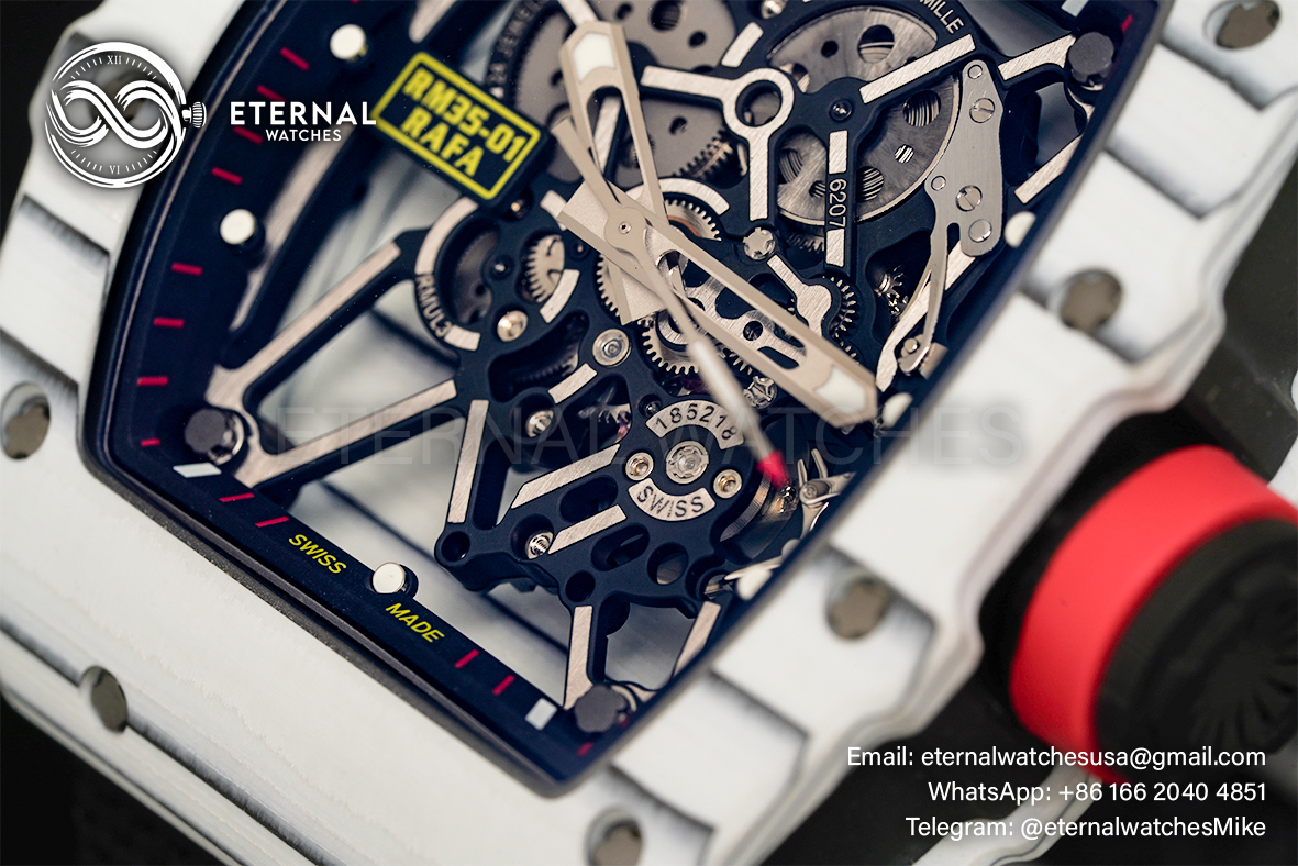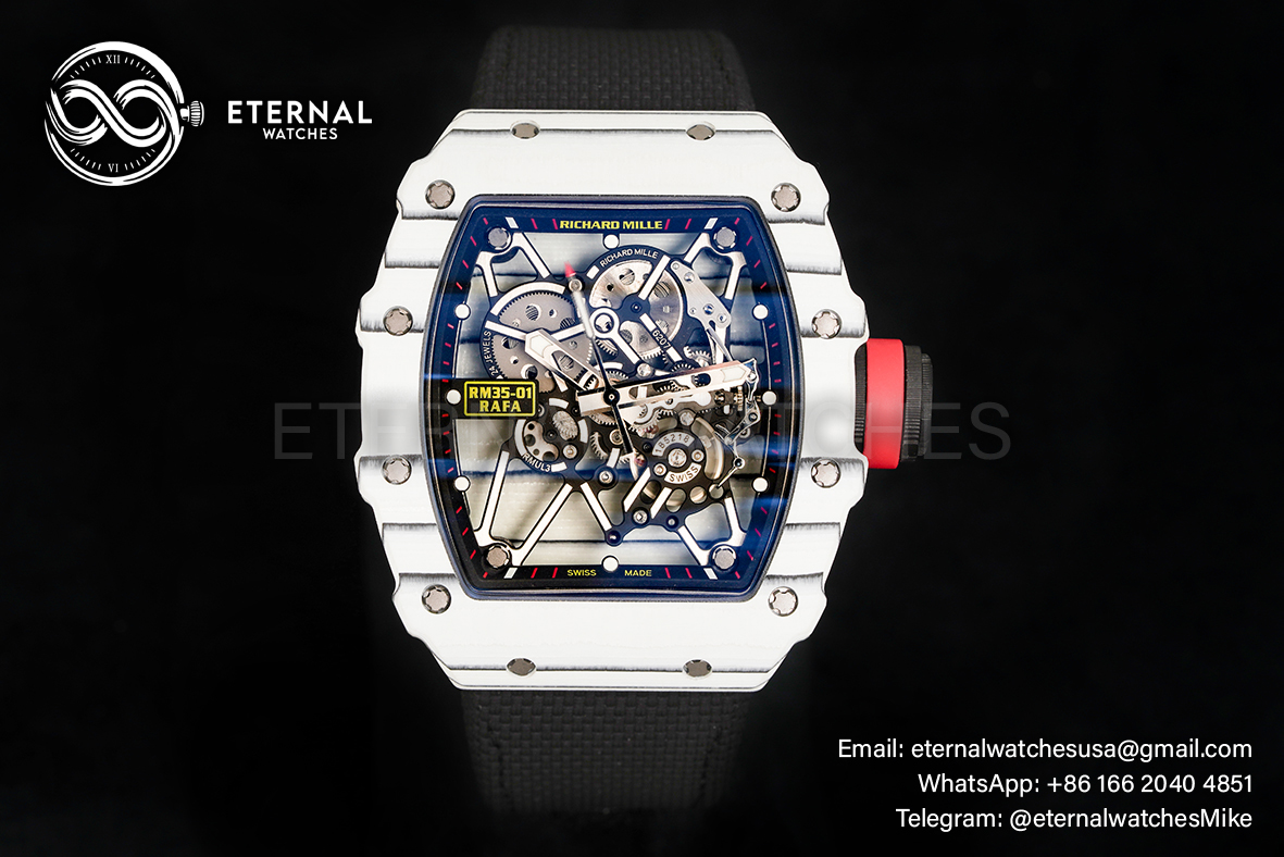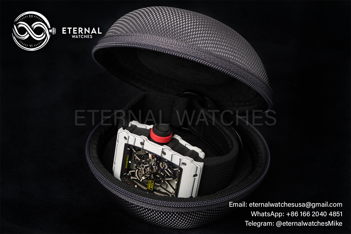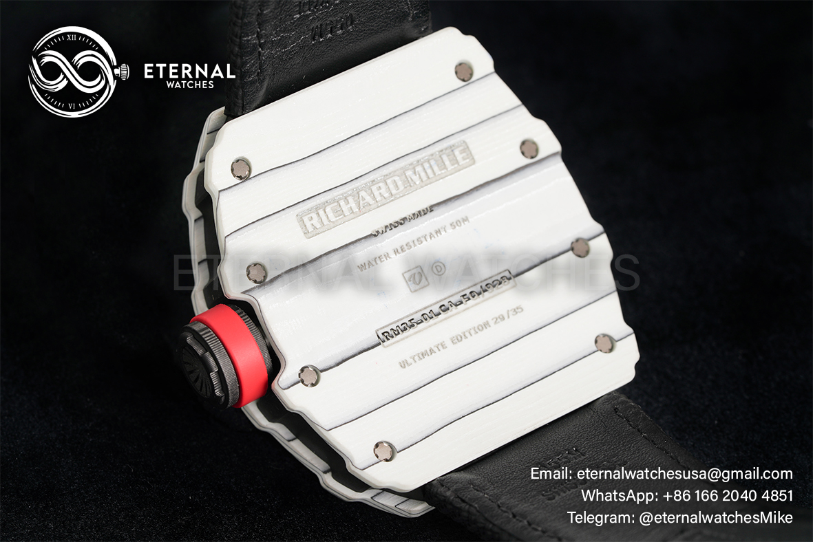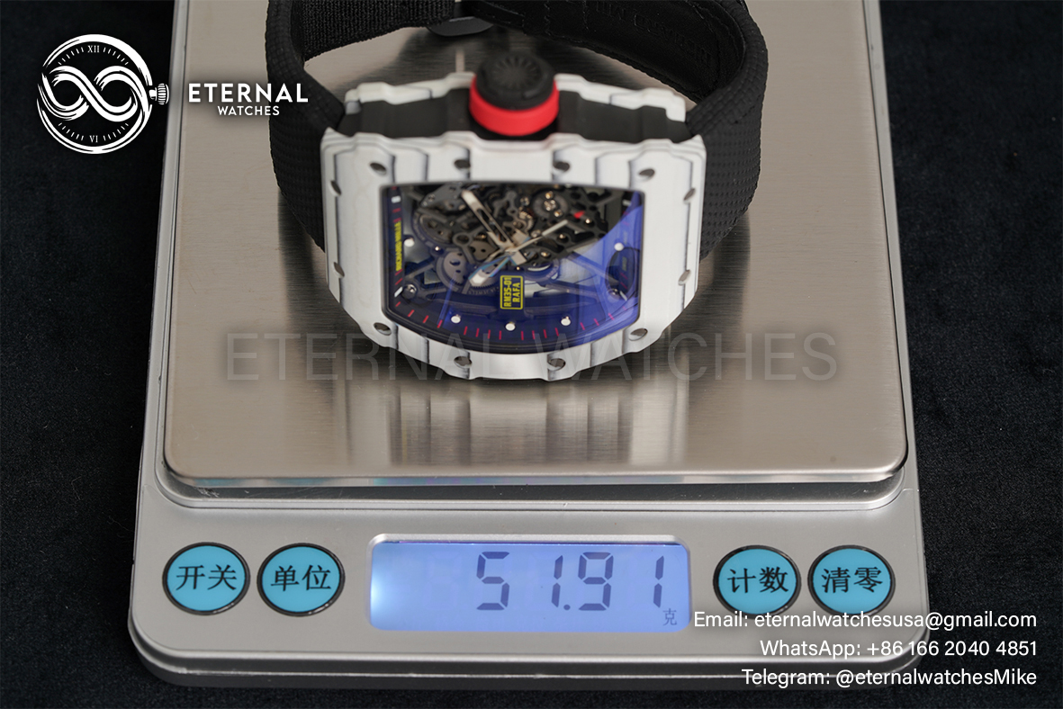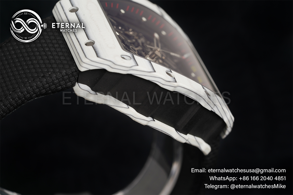 MOVEMENT:Vaucher Super Clone Manual Movement, 60+ hour Power Reserve WEIGHT: 51.9 grams CASE DIAMETER:42mm THICKNESS:14mm DIAL COLOR:Skeleton Dial with Black Inner Bezel Rehaut CASE MATERIAL:Real NTPT Carbon Material Bezel/Case and Caseback. The accessories are Interchangeable with Genuine Watch Parts BRACELET:Black Nylon Velcro Strap with Additonal White Rubber Vented Strap FRONT GLASS:Super Clear Sapphire Crystal with Correct True AR Coating CASE BACK:Real NTPT Carbon Material BEZEL:Real NTPT Carbon Bezel with Unique Textures