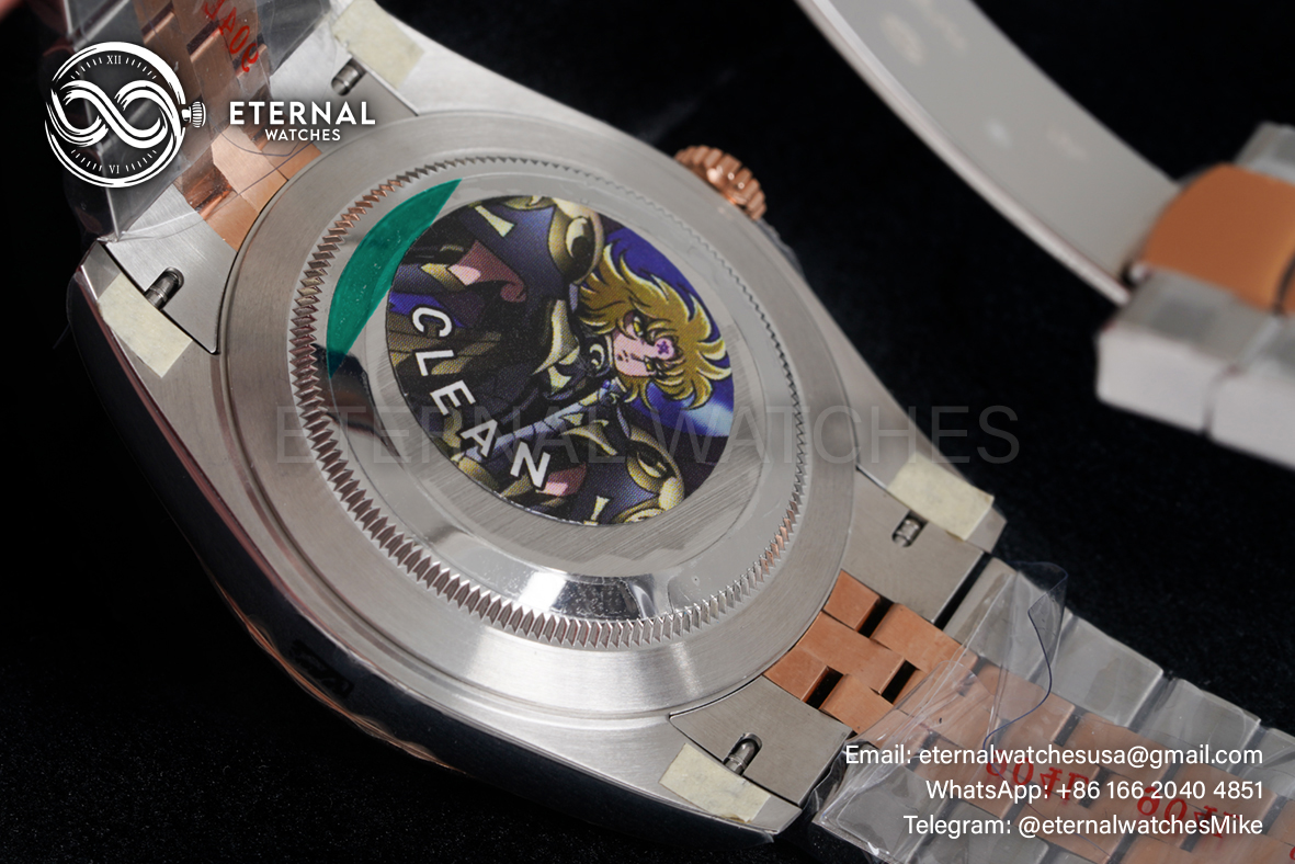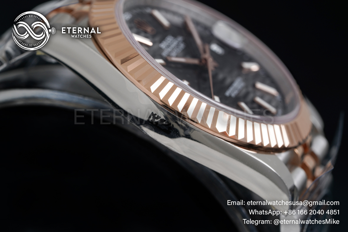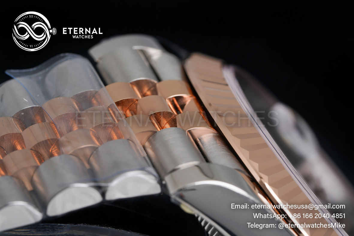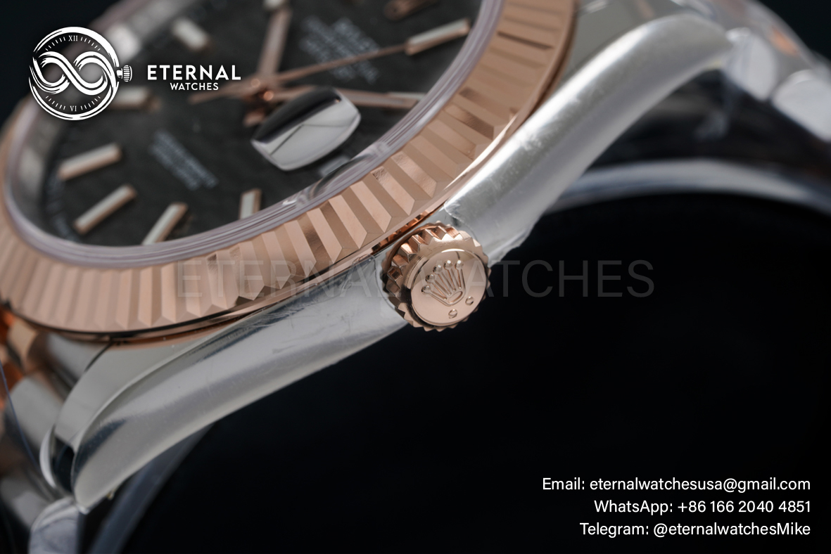 MOVEMENT: Asia Clone New Custom SH3235 Automatic Movement, 28800bph with Fully Decorated Rotor and Bridges & Plates like Genuine Rolex Caliber 3235 (Best Made Clone Movement from Clean) CASE DIAMETER: 41mm THICKNESS: 12mm DIAL COLOR: Grey Textured Dial with Stick Markers (Blue Superlume Applied on Hands and Markers) CASE MATERIAL: Solid 904LStainless Steel BRACELET: Two Tone 18K Rose Gold Plated Solid 904L Stainless Steel Jubilee Bracelet with New Style Rolesor Deployant Buckle FRONT GLASS: Sapphire Crystal, Same Thickness and Height above bezel as per Genuine (With etched crown at 6:00 position) CASE BACK: Solid case back BEZEL: Fluted Bezel CLASP TYPE: New Style Rolesor Deployant Buckle DATE INDICATOR: At 3:00 Position (Adjusted via the crown)