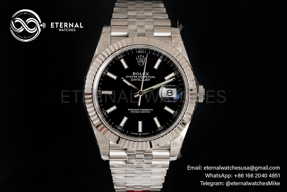MOVEMENT:Asia Super Clone VS3235 Automatic Movement, 28800bph with Fully Decorated Rotor and Bridges & Plates like Genuine Rolex Calibre 3235 (Best Made Clone Movement from VSF) CASE DIAMETER:41mm THICKNESS:12mm DIAL COLOR:Black Dial with Stick Markers (Blue Superlume Applied on Hands and Markers) CASE MATERIAL:Solid 904L Stainless Steel BRACELET:Solid 904L Stainless Steel Jubilee Bracelet with New Style Rolesor Deployant Buckle FRONT GLASS:Sapphire Crystal, Same Thickness and Height above bezel as per Genuine (With etched crown at 6:00 position) CASE BACK:Solid case back BEZEL:Fluted Bezel CLASP TYPE:New Style Rolesor Deployant Buckle DATE INDICATOR:At 3:00 Position (Adjusted via the crown)