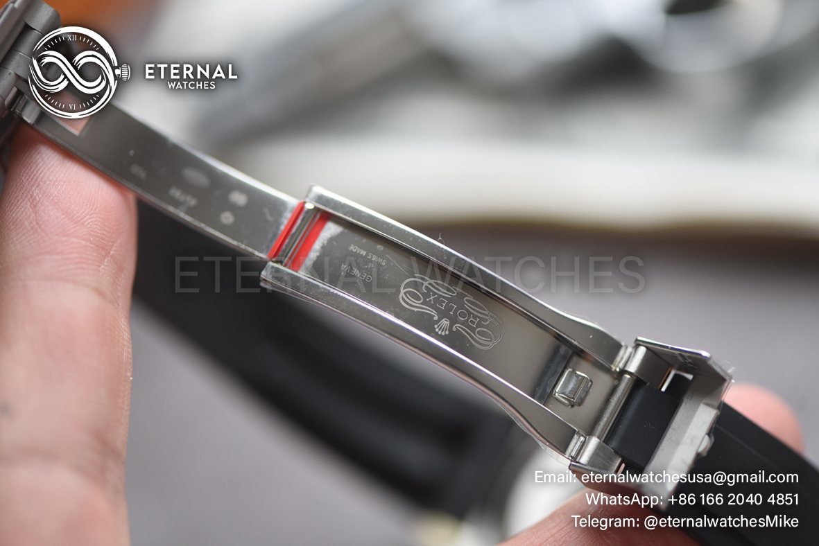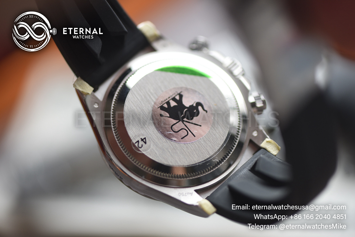 MOVEMENT:Asian Super Clone DD4131 Slim Chronograph Automatic with Fully Functional Bridge/Plates and Shock Absorbers CASE DIAMETER:40mm THICKNESS:12mm DIAL COLOR:Black Dial & Stick Markers (with Blue Superlume Applied) CASE MATERIAL:904L Stainless Steel, the Watch Head is About 98.5g BRACELET:Black Rubber Strap with Deployant Clasp FRONT GLASS:Scratch-proof Sapphire Crystal with AR Coating CASE BACK:Solid Case Back BEZEL:Black Ceramic Tachymeter Bezel CLASP TYPE:Flip Lock New Style Buckle