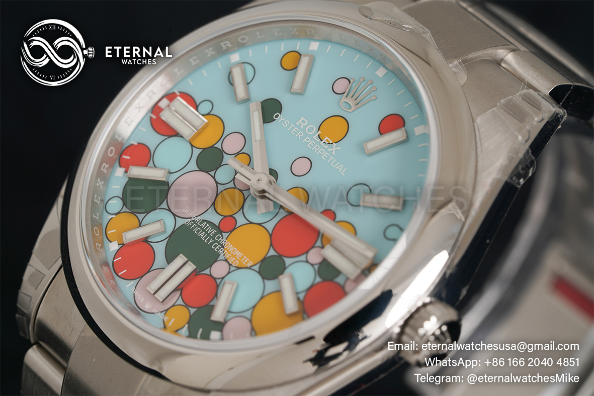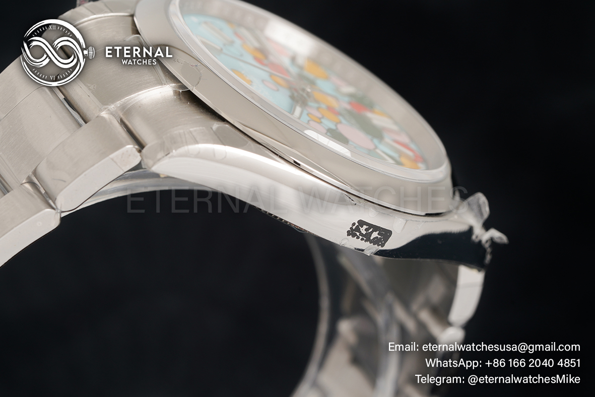 MOVEMENT:Asian super clone VS3230 automatic with fully functional bridge/plates and shock absorbers (no ghost date gear) CASE DIAMETER:41mm THICKNESS:12mm DIAL COLOR:Celebration Dial with Stick Markers (With Swiss Grade Superlume in Blue) CASE MATERIAL:Solid 904L Stainless Steel BRACELET:Solid 904L Stainless Steel Bracelet with Deployant Buckle FRONT GLASS:Sapphire Crystal with colorless AR coating CASE BACK:Solid case back BEZEL:Polished Bezel CLASP TYPE:Deployant Buckle