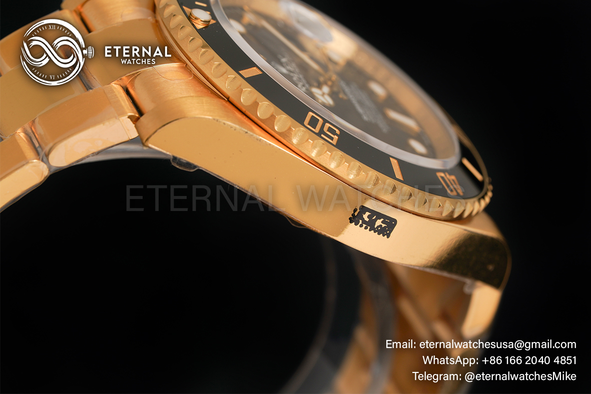 MOVEMENT: Asia Clone New Custom VS3235 Automatic Movement, 28800bph with Fully Decorated Rotor and Bridges & Plates like Genuine Rolex Calibre 3235 (Best Clone Movement from VSF) CASE DIAMETER: 41mm THICKNESS: 12.25mm (Same Thickness as Genuine) DIAL COLOR: Black Dial with Dot Markers (With Swiss Grade Blue Superlume Applied) CASEMATERIAL: 18K Yellow Gold Plated Solid Stainless Steel 904L BRACELET: 18K Yellow Gold Plated Solid Stainless Steel 904L with Flip Lock Deployant Buckle FRONTGLASS: Sapphire Crystal (Same thickness as Genuine) - Etched crown at 6:00 position, 2.5 X Mag Cyclops (Same as Geniune) CASE BACK: Solid case back BEZEL: Black Uni-directional Diver Ceramic Bezel, Anti-Clockwise (With Swiss Grade Superlume on Bezel Dot) HACK MOVEMENT: Yes CLASP TYPE: Deployant Buckle DATE INDICATOR: At 3:00 position (Adjusted via the crown) - Correct Date Mag of 2.5X