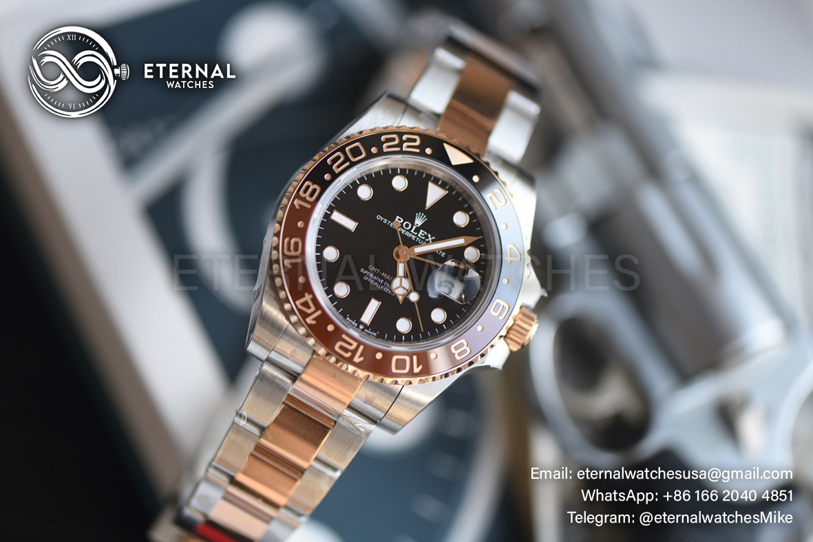 ROLEX - SUPER CLONE GMT Master II 126711CHNR Root Beer Oyster 40mm SS/RG Black Dial VSF DD3285 (Weight Adjusted)