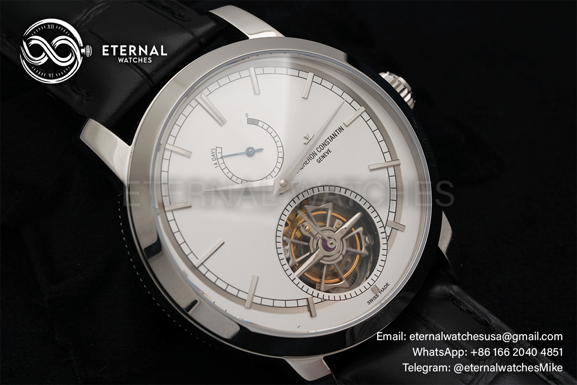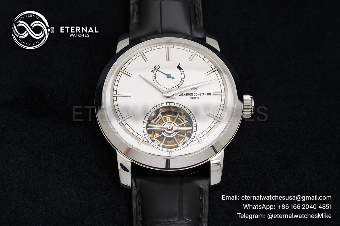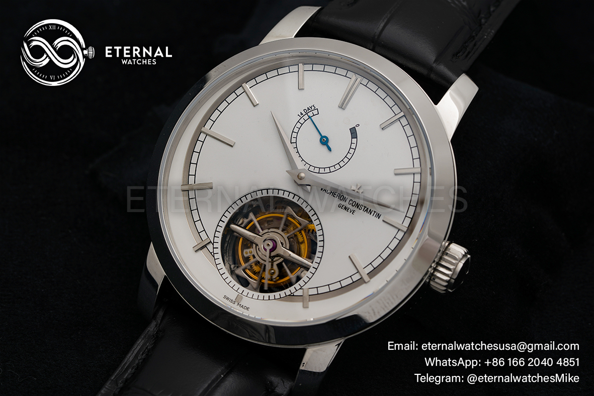 MOVEMENT:Asia Manual Wind Flying Tourbillon with Decorated Bridges & Plates CASE DIAMETER:42mm THICKNESS:13mm DIAL COLOR:White Dial with Stick Markers & Flying Tourbillon at 6:00 position CASE MATERIAL:Solid 316L Stainless Steel BRACELET:Black Alligator Leather Strap with New Spec Deployant Clasp FRONT GLASS:Scratch-proof Sapphire Crystal CASE BACK:Display Case Back with Detailed Engraving CLASP TYPE:Deployant Clasp